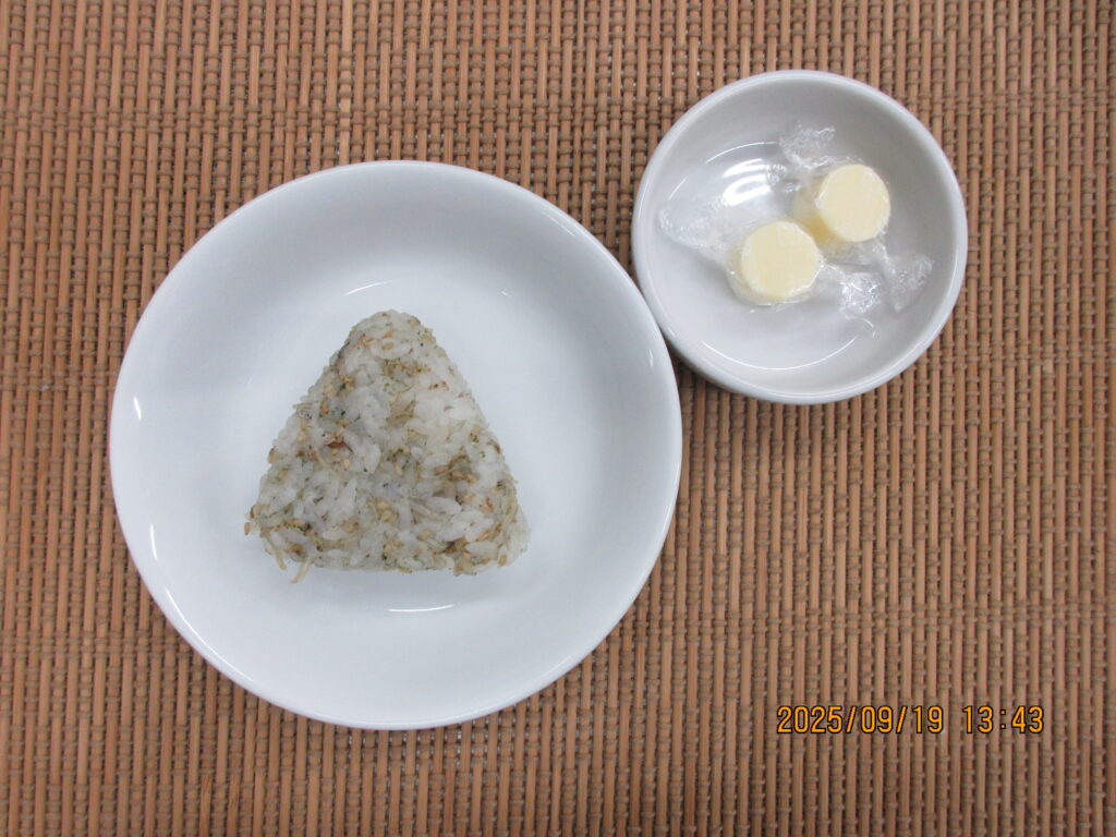 [おやつ:じゃこおにぎり、キャンディーチーズ]