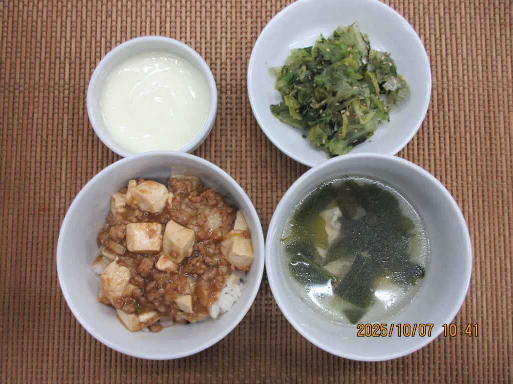 給食【マーボー丼、スープ、チョレギサラダ、ヨーグルト】
