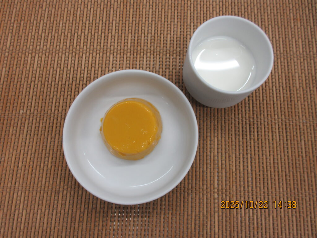 おやつ【かぼちゃプリン、牛乳】
