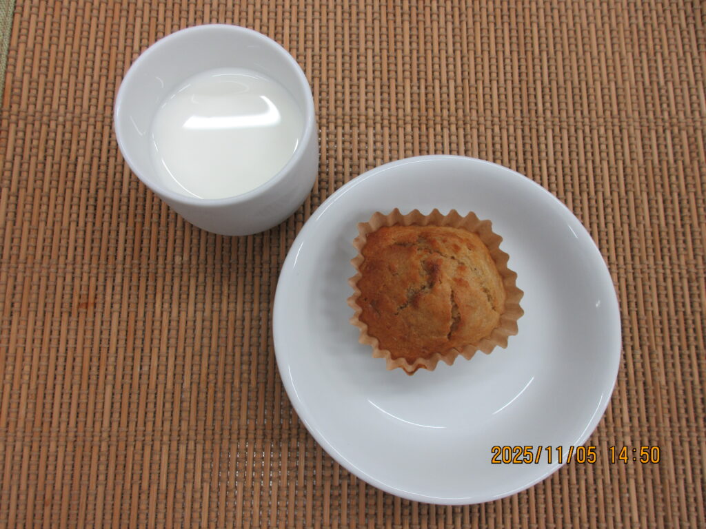 バナナマフィンにはペースト状に刻んだバナナをたっぷりと入れています。バナナの甘さを生かしたマフィンで、子どもたちも喜んで食べていました。