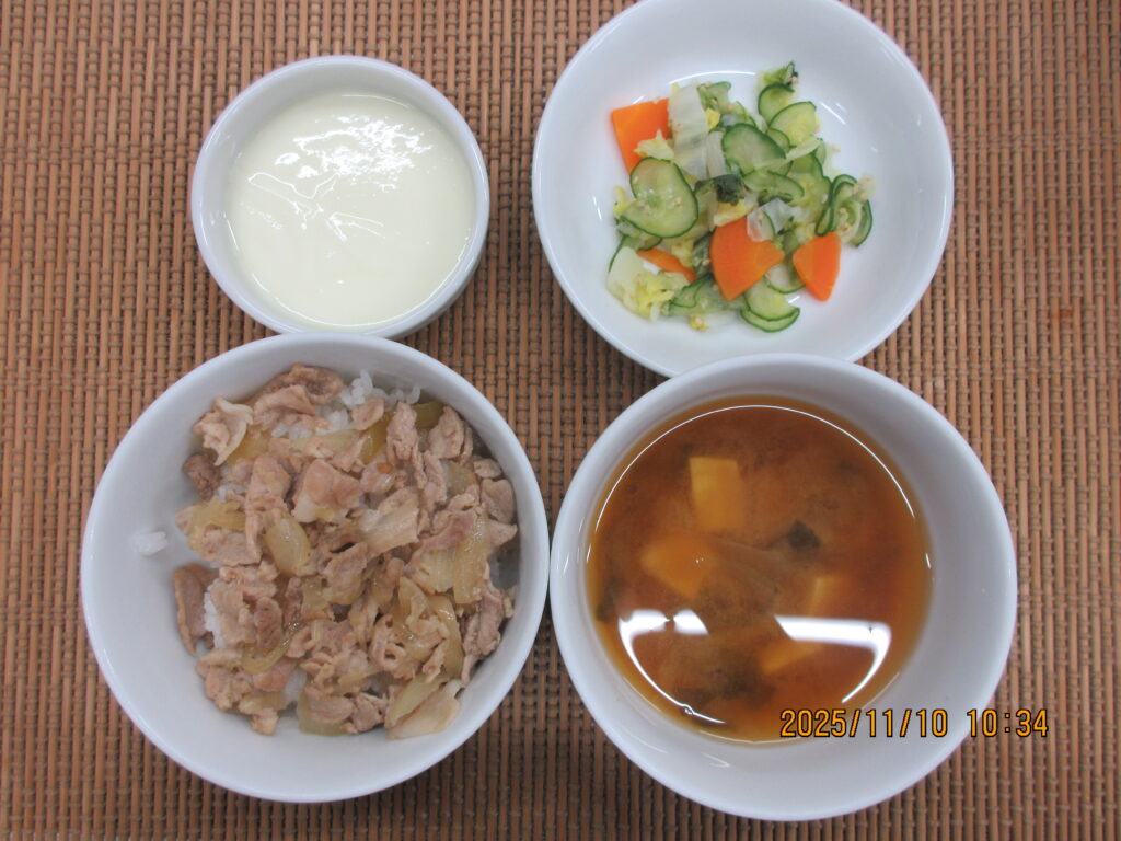 昼【豚丼、浅漬け、味噌汁、ヨーグルト】