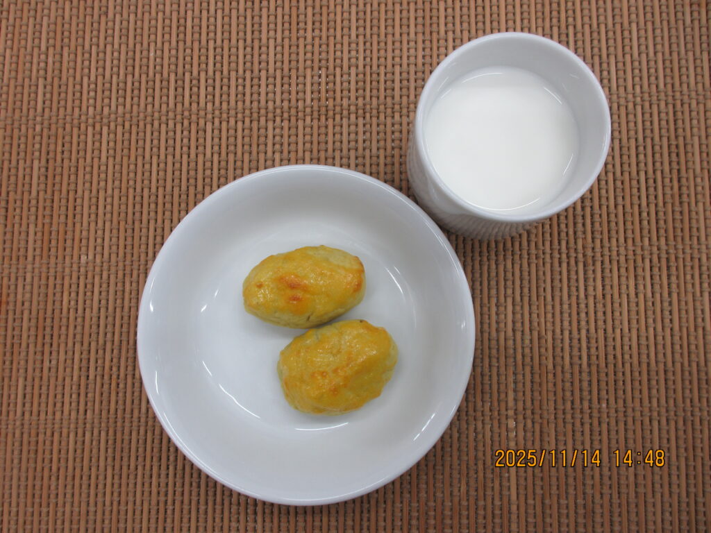 おやつ【スイートポテト、牛乳】