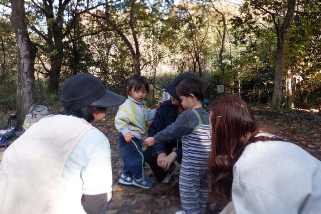 今日はとても暖かく心地の良い中、さんぽに出かけました。葉っぱや木の実を拾ったり、舞い散る木の葉の様子を眺める等、秋を感じることができました。