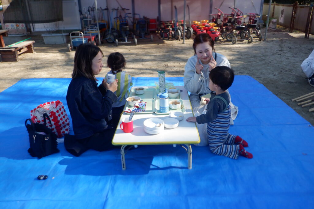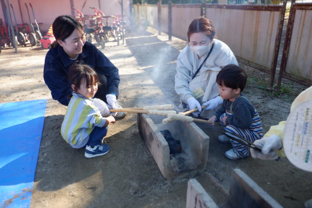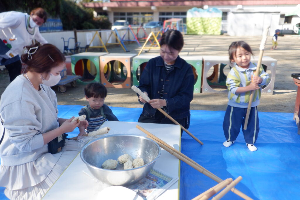 さんぽから戻りねじりパンづくりをしました。親子でパンづくりを楽しみました。