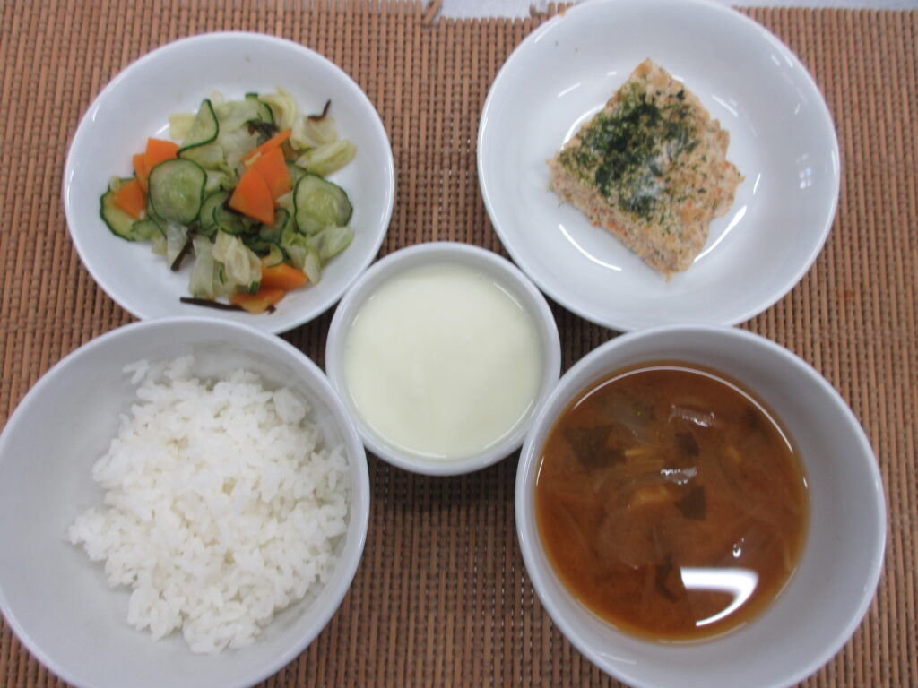 昼【米飯、松風焼き、昆布和え、味噌汁、ヨーグルト】