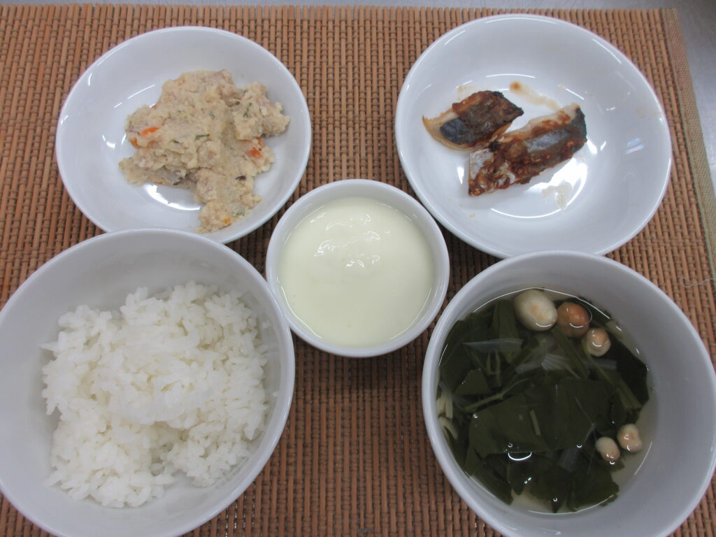 昼【米飯、鰆の味噌焼き、炒りおから、すまし汁、ヨーグルト】