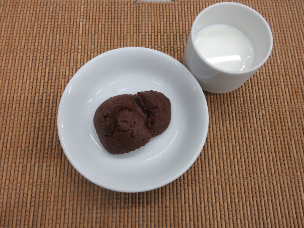 おやつ【米粉ココア蒸しケーキ、牛乳】