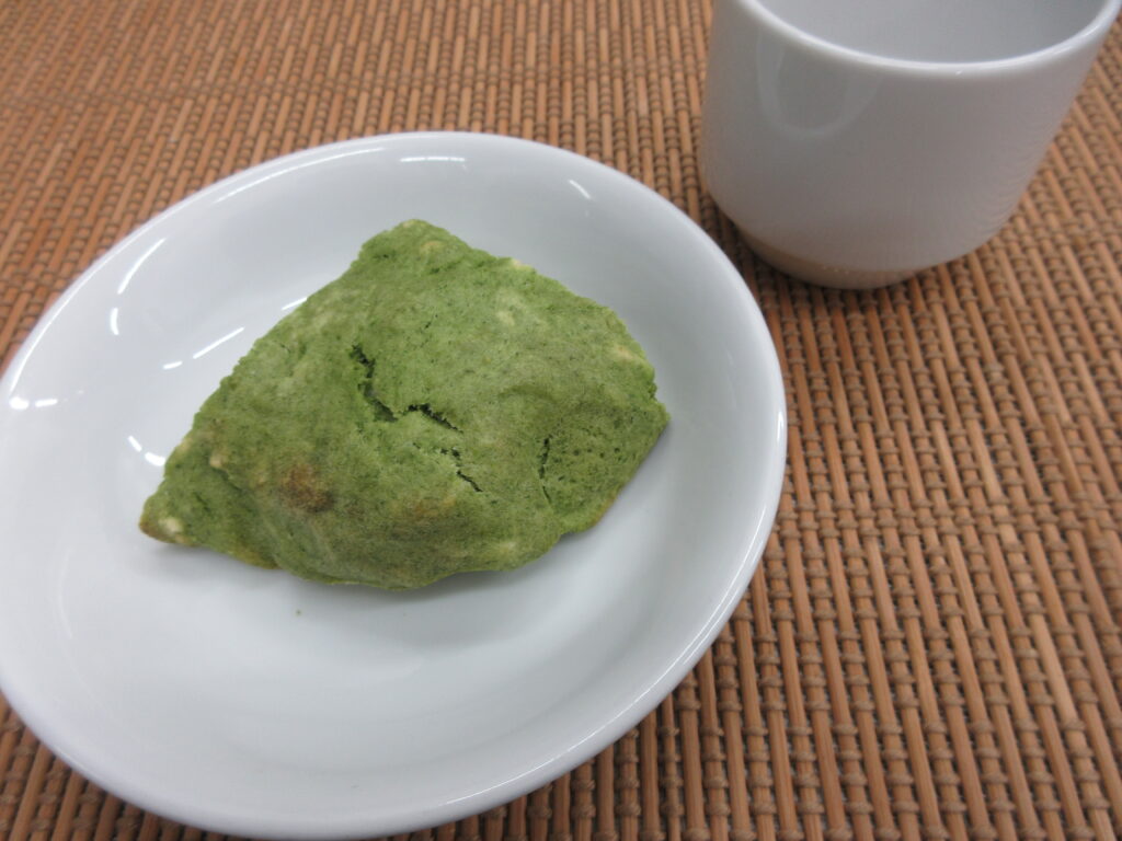 ほうれん草ケーキは、ペースト状に刻んだほうれん草を使ったお菓子です。「やったーたべる」とおやつの時間を楽しみにする子どもたちの姿がありました。