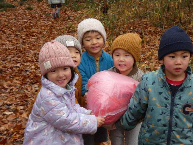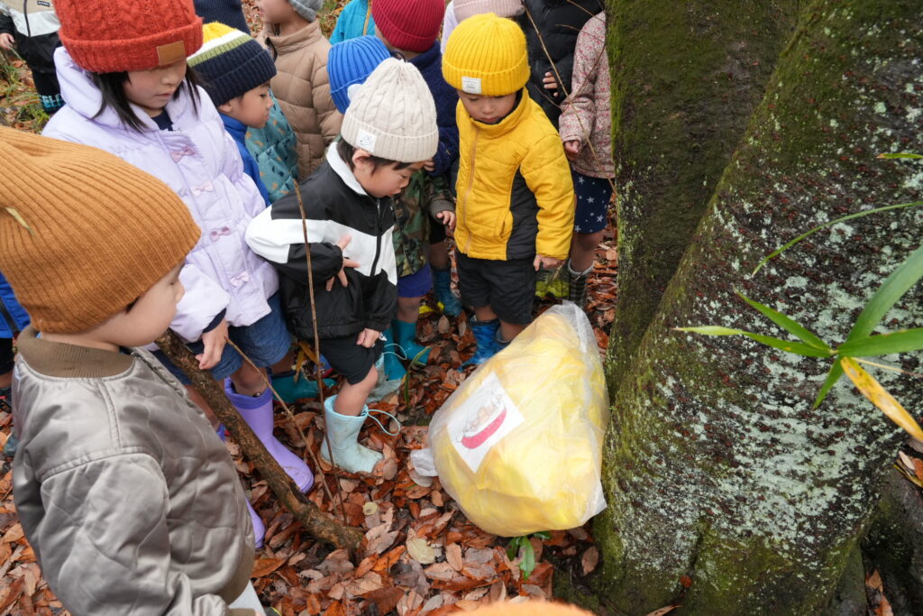 午睡後、つくし組の子どもたちはプレゼント探しに出かけます。いつも遊んでいるさんぽ先を見に行きました。すると…