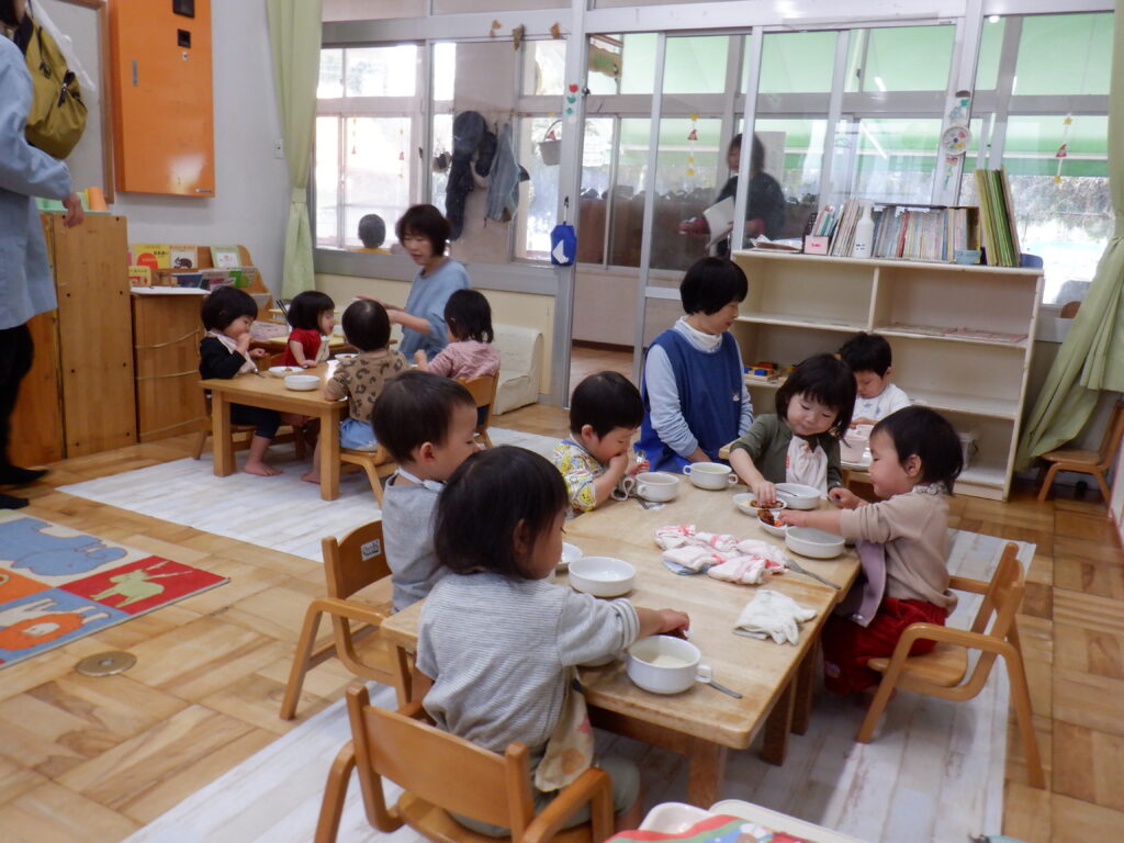 食事は、0.1歳児の子どもたちは、保育室で食事。