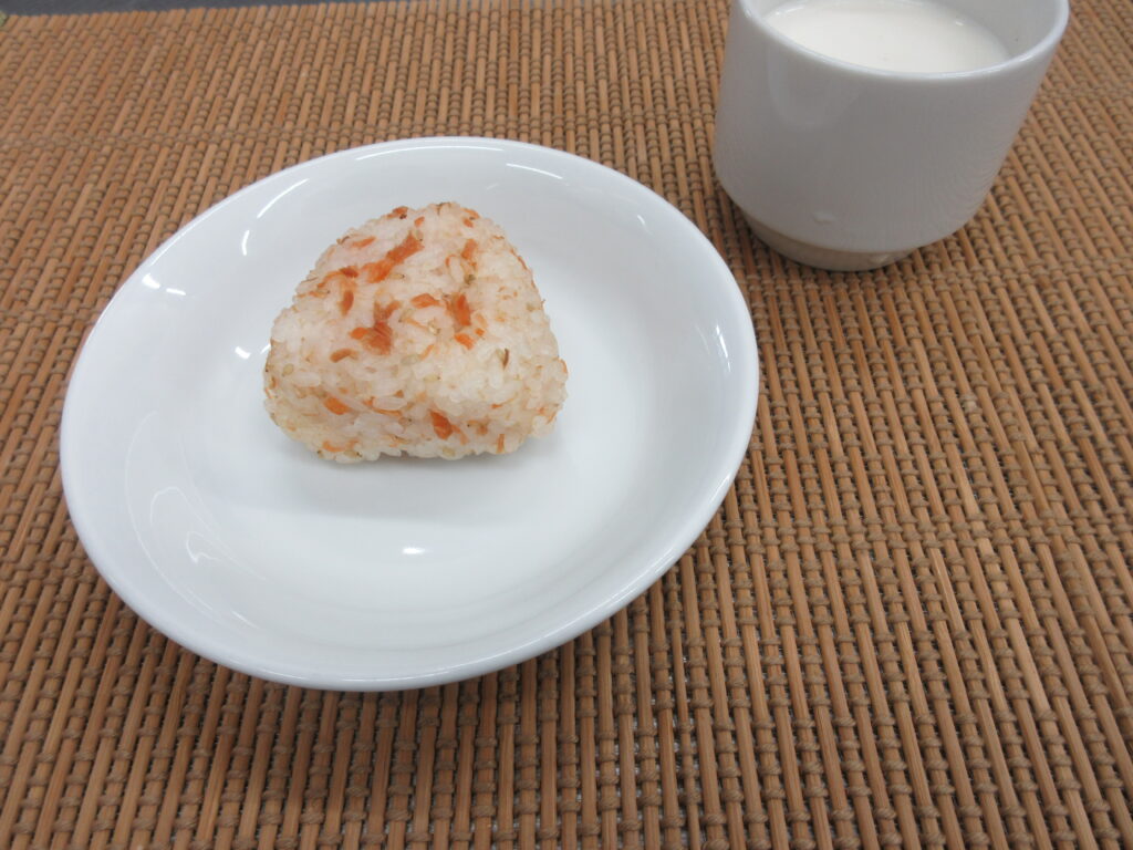 おやつ【鮭おにぎり、ヨーグルトドリンク】