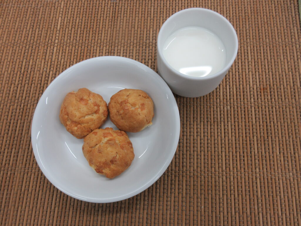 おやつ【チーズクッキー、牛乳】
