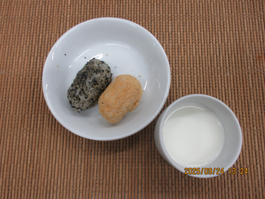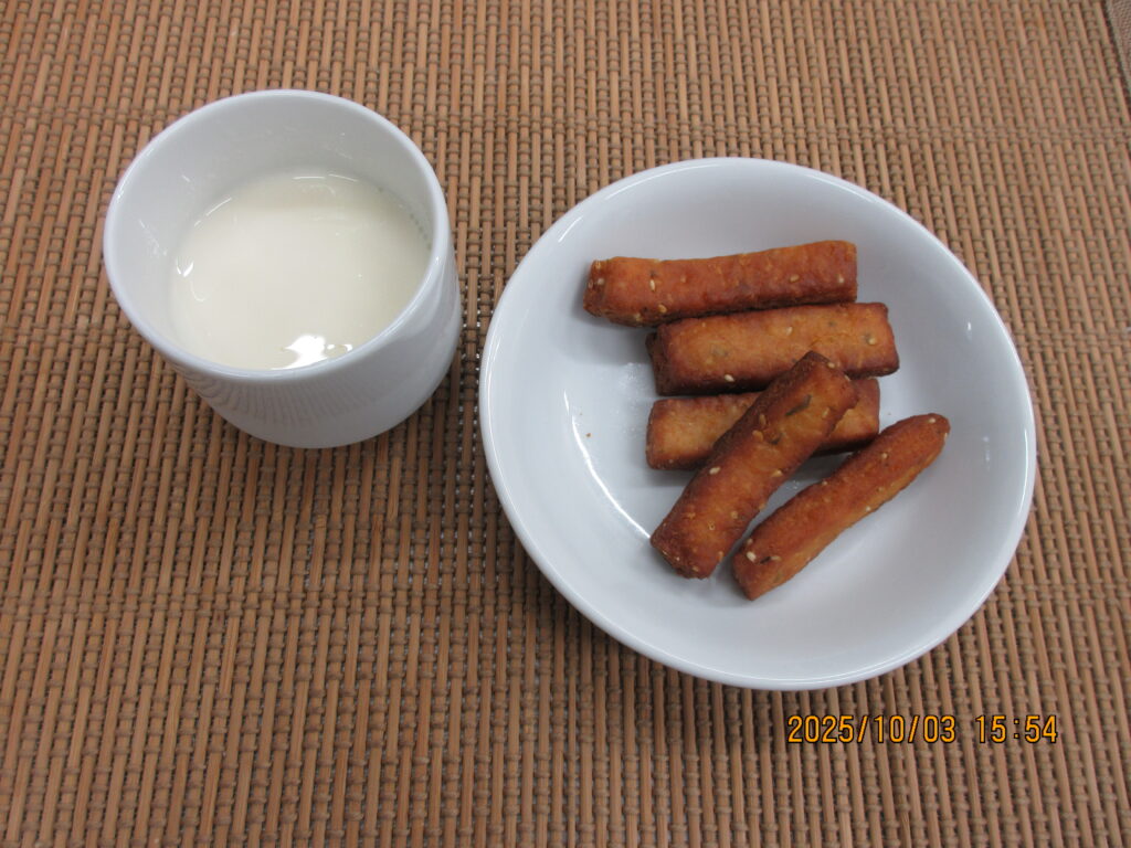 昼【ご飯、高野豆腐の含め煮、くるみ和え、味噌汁、ヨーグルト】 今日の煮物に入っているしいたけに、子どもたちは興味津々でした。干ししいたけをもどし汁といっしょに煮ているので、うま味がたっぷりの主菜です。 おやつ【カルシウムかりんとう、ヨーグ... -